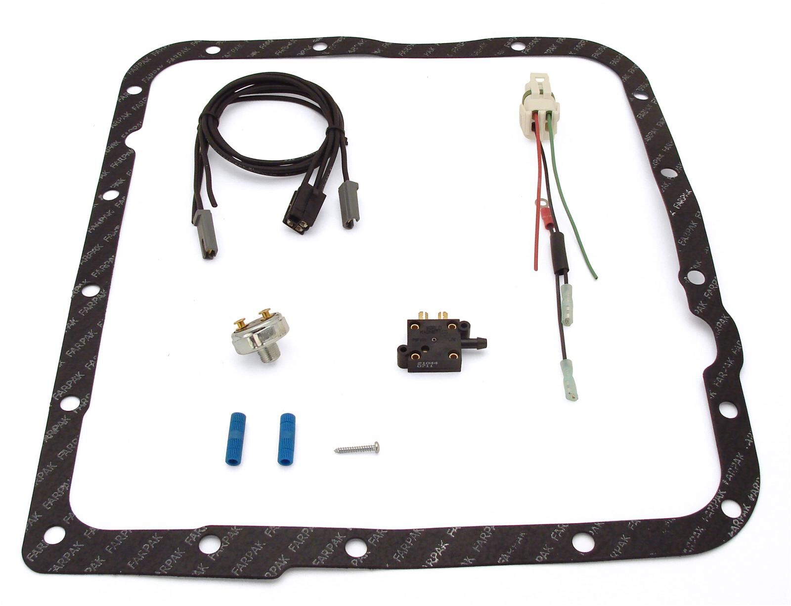The TCI 376600 torque converter lock-up wiring kit provides a simple and reliable way to control the torque converter clutch (TCC) in GM 700R4 and 2004R automatic transmissions when running a carbureted engine or a vehicle without a factory ECU.